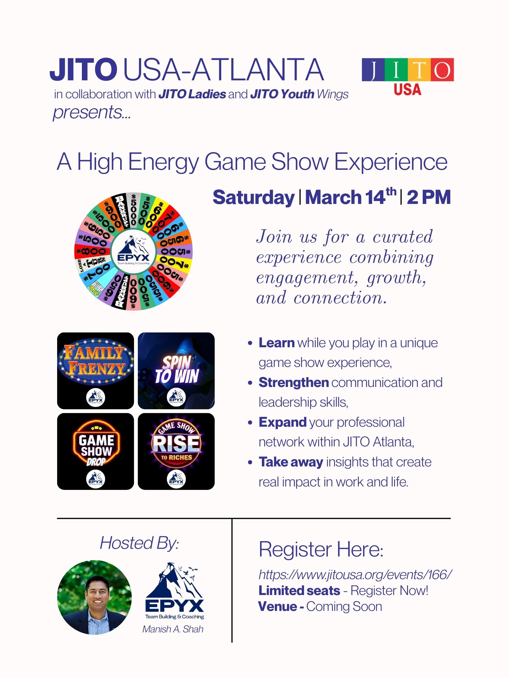 JITO USA Atlanta cordially invites you to an exciting Game Show Afternoon.